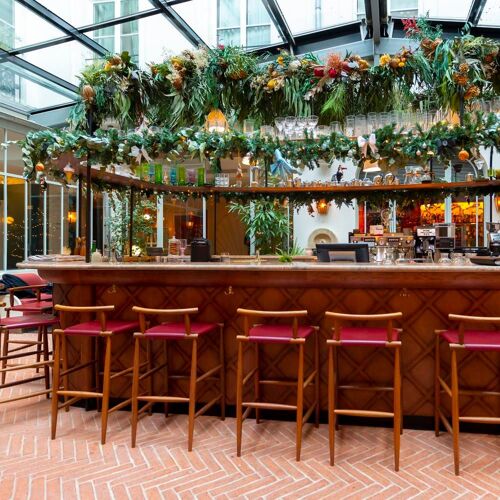 A hip, trendy vibe and a warm welcome set the scene beneath the hotel's central winter garden structure. The concise Italian-themed menu, devised by chef Giovanni Passerini, is both simple and succulent, illustrated by grilled cuttlefish, risotto of spelt and grilled aubergine; Giovanni’s ravioli of spinach, ricotta and sage butter; monkfish in spices, wax beans and chard, emulsion of Savagnin (variety of grape). The beverage list features an intriguing lineup of wines and cocktails. Just the ticket for a party night out on the town!