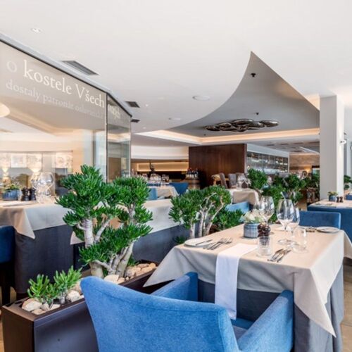 You'll feel as if you've been whisked away to the Mediterranean! The menu features tempting dishes such as "shrimp confit, potato, saffron aioli, radish", "gnocchi, mushrooms, pine nuts, beetroot, goat cheese, herbs" or "boar, cream, cranberries, semolina". Simply order à la carte, or opt for one of the tasting menus compiled from the same options. The delicious food can be accompanied by something from the extensive wine list, which features European labels, including some big names. Furthermore, diners enjoy attentive and adept service in a bright and classically elegant setting – a unique detail of the decor is the excavated historical church wall, protected by glass.