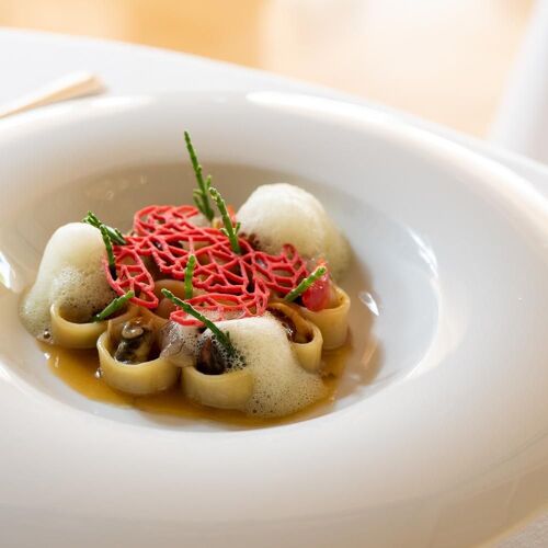 In the sumptuous setting of the Grand Hotel Fasano, this restaurant decorated with a profusion of wood has just a few tables, where guests can choose between tasting menus (including a vegetarian option) and an à la carte selection. Although influences from chef Maurizio Bufi’s native Puglia and the Lake Garda region can be detected in the cuisine, other Italian regions (and indeed other countries) also make an appearance in the creative dishes, which are inspired by whatever ingredients are in season.