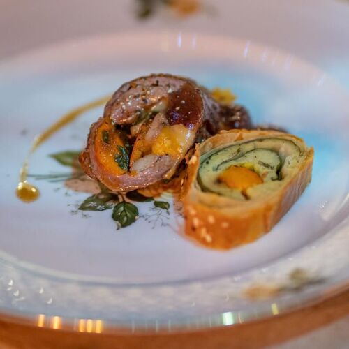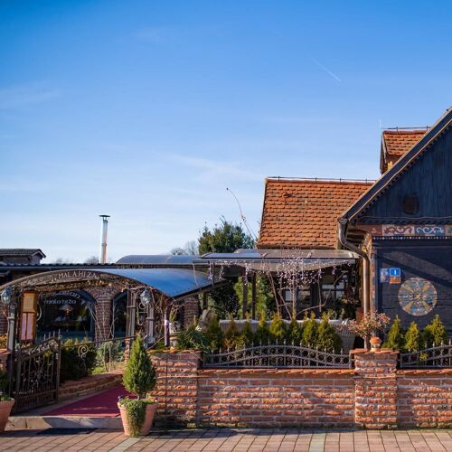Occupying a late-19C house surrounded by a beautiful garden with a fountain and small stream, this friendly restaurant run by its owner-chef and his family boasts a romantic ambience. The cuisine is regional in style, with a focus on local ingredients and dishes accompanied by local wines. Appetisers include stuffed pasta, while meat options (especially beef and lamb) dominate the main courses. To finish your meal in style, why not try the gibanica, a popular local dessert made with layers of shortcrust pastry, fresh cheese, eggs and pumpkin.