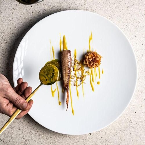 A restaurant in a stunning location, 20m above ground level in the tower of the emblematic Centro Niemeyer, with its superb views of the town. Taking its name from the Japanese word for “dream”, Yume provides chef Adrián San Julián with a platform to showcase his philosophy of sustainability and zero waste, hence the desire to use just one ingredient (such as onion, cauliflower, spinach, celeriac, cat shark etc) presented in many different ways in the same dish, at the same time exploring its different stages of preparation and intensity of flavours based around strong technique. The cuisine here is showcased on two impressive and bold menus: “Ejecutivo” (lunch from Tuesday to Friday) and the “Degustación” tasting option.