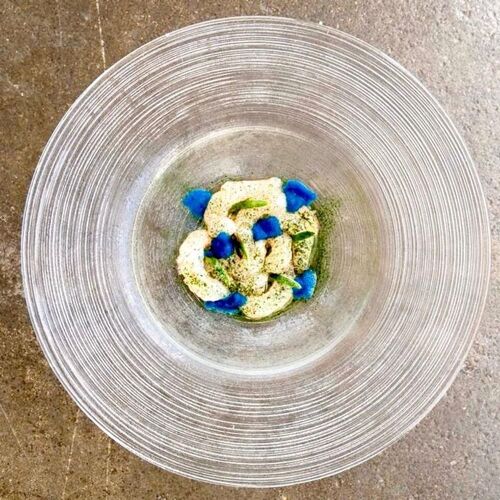 Fradis Minoris is a naturalistic and sustainable venture, inspired by the distant allure of the Nora Lagoon Natural Park. This captivating environment serves as a muse for creating a distinctive journey within the realm of fine dining. After parking, guests take a short walk of a few hundred metres along the isthmus, entering a protected marine area managed by the restaurant owners themselves. It seems almost inevitable that the culinary direction here embraces a fully circular approach. The menu features a single tasting option, deeply rooted in the seasonality of local ingredients: the catch is often sourced directly from the lagoon, or at most, the southern Sardinian sea. Additionally, wild herbs are gathered from the lagoon, and a variety of vegetables are sourced from nearby Campidano's small-scale producers. Creativity and the technical prowess of chef Francesco Stara shape exquisite and novel tasters. The wine list, with its profound focus on discovering small-scale producers scattered across the island, mirrors a strong attention to the region, complemented by an intriguing wine pairing suggested by the sommelier. Supporting this offering is their bistrot version, FradisLab.