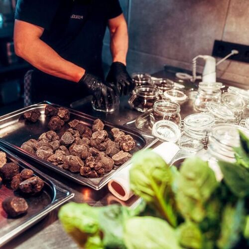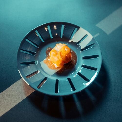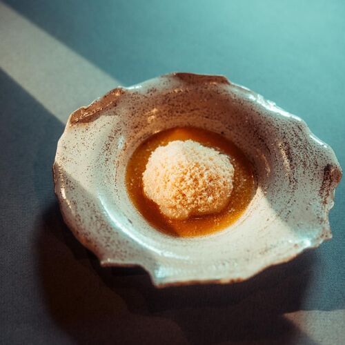 The clean, minimalist design immediately catches the eye, as do the striking brick arches overhead. Seated at attractive solid wood tables in a pleasantly relaxed setting, diners have a clear view into the open kitchen – and they can see just how dedicated Fabian Günzel and his team are! The pared-down interior is reflected in the numerous modern and creative courses of the set menu. The wonderfully succulent charcoal-grilled Atlantic turbot is an excellent example of the emphasis placed on premium ingredients – delicately aromatic and perfectly seasoned, it is served alongside lightly sautéed New Zealand spinach, firm trout caviar and creamy warm yogurt with grated Sicilian almonds. The appealing and extensive wine list includes intriguing pairings tailored to the set menu.