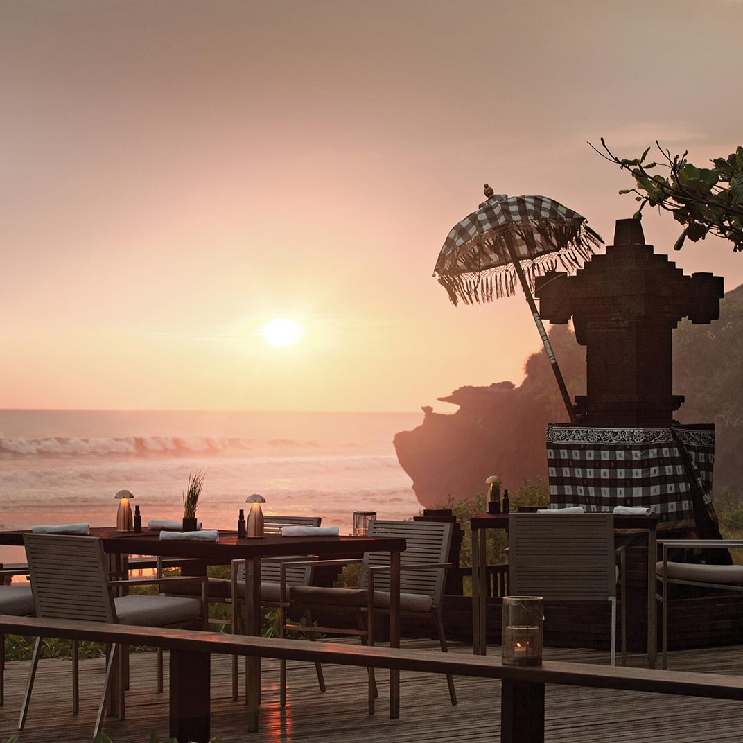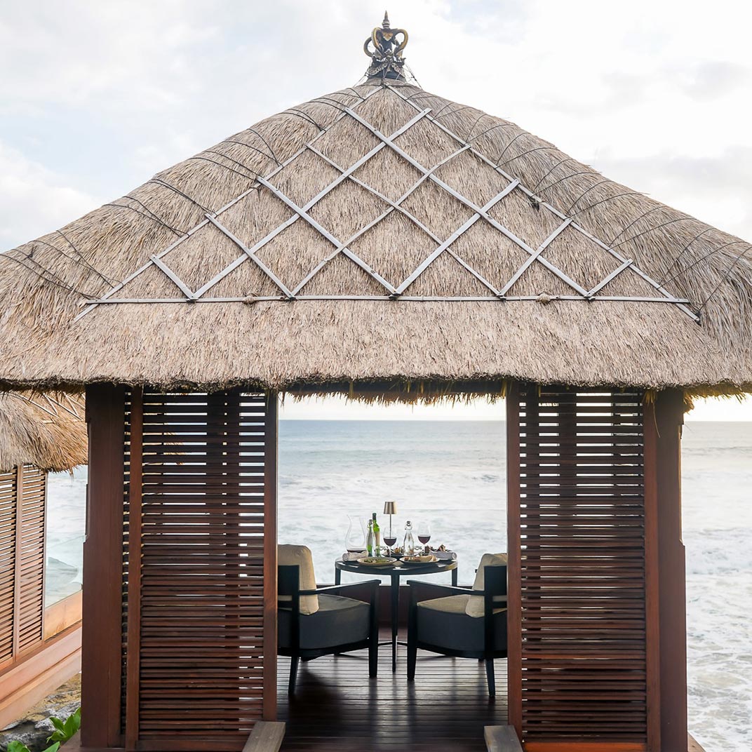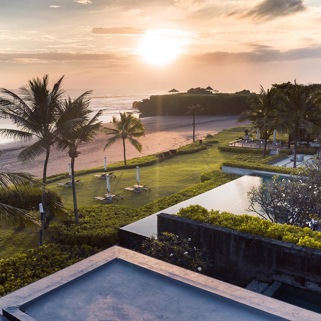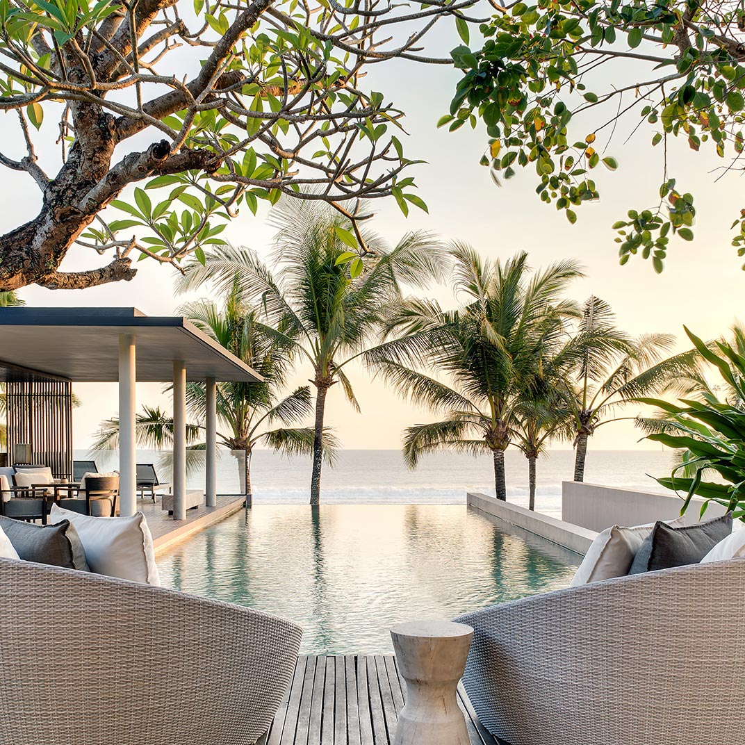 Die 45 Villen sind Raffinesse pur, einfach, mit einer Neigung zum offenen Raum, mit einer nahtlosen Verbindung zwischen dem Außen und Innen. Wählen Sie zwischen Pool, Terrasse, direkt am Strand auf Bodenhöhe, oder dem 1. Stock mit Blick über die ganze Anlage. Lassen Sie Ihre Seele im Infinity-Pool oder dem Rejuvenating Spa baumeln und speisen Sie in mehreren Restaurants, die die tollsten neu aufgestellten Gerichte der balinesischen Küche anbieten. Mit einem gelassenen Ausblick auf die Küste im Südosten und die saftigen Anhöhen rundum, ist die Stille so greifbar wie der schwarze Sand unter Ihren Füßen.