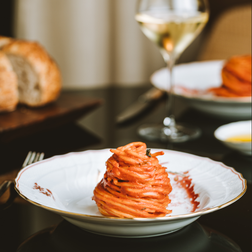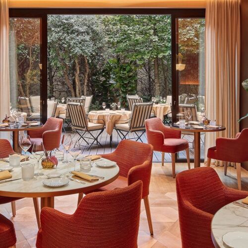 Niko Romito, a chef from Abruzzo with three Michelin stars to his name, updates the classics of Italian cooking in a menu that really homes in on the produce and dares to go light (easy on the fat, limited sauces, steamed ingredients, rice starch for the breadcrumb coating etc). The saffron risotto with parmesan is subtle and does not weigh on the stomach, as is the magnificent veal cutlet alla Milanese, to be savoured in this elegantly sleek dining area that opens onto the interior garden.