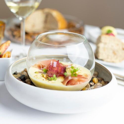 At the top of the Bergerac vineyards, next to an old windmill, this beautiful and opulent establishment affords an unforgettable view. Chef Damien Fagette taps into the Périgord terroir and its produce, working with Blonde d'Aquitaine beef, foie gras and free-range Périgord chicken. His skilfully and meticulously crafted contemporary cuisine is a successful alliance of fine ingredients, accurate cooking and well-defined flavours: langoustine tartare with a spicy lemongrass shell jus and green asparagus; fillet of beef with Kalamata olives and stuffed morels; warm soufflé with Grand Marnier. A wonderful experience.