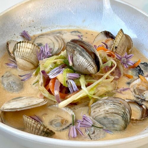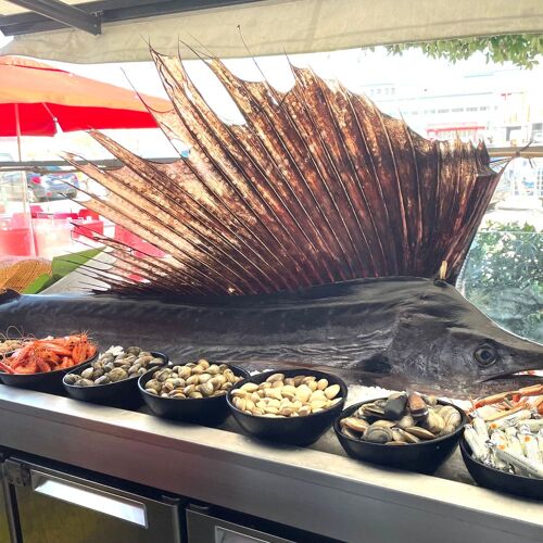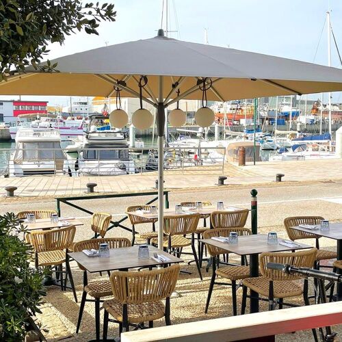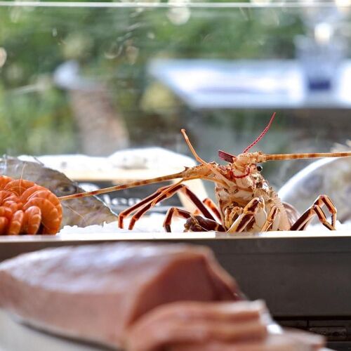 On the quayside facing the fishing port, the seafood counter piled high with fish and shellfish sits proudly in front of the restaurant. This seafaring theme is naturally pursued indoors, where the chef is busy in his open-plan kitchen. The menu features seafood platters, fresh fish chalked up on the daily specials board, a few family favourites and a scattering of signature dishes like seabream cooked in a banana leaf, lime and coconut milk, whole sea bass roasted in fennel and flambéed with aniseed, or their famous cotriade – Brittany's answer to bouillabaisse. A few meat dishes are also available.