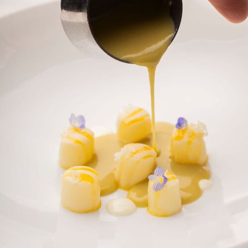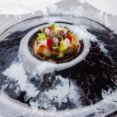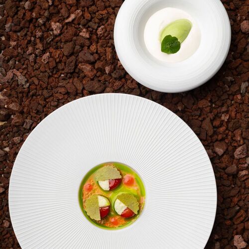 Is it Adrien Descouls's native region of Auvergne that inspires his ever-so-fresh cuisine? In this modern building perched right next to a 14C castle, just outside Issoire, the chef demonstrates his strengths without ever overdoing it: choice of ingredients, ability to showcase the local terroir (and the kitchen garden!), and a youthful energy that sometimes moves mountains! His is a rather refined contemporary style, but one that nonetheless leans towards more classic and comforting food, as seen in dishes such as his excellent stuffed poultry medallion with a summer porcini sabayon and full-bodied jus. At lunchtime, only the Bistro Le Basalte menu is served – an option that means you can feast your eyes on the magical view as you savour a simpler version of the chef's cooking.