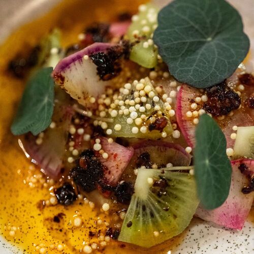 After training at the Paul Bocuse Institute and a number of noteworthy spells in top establishments, such as Troisgros, youthful Carla Kirsch, who hails from Veracruz in Mexico, has settled in the Croix-Rousse district. The signature here is clearly Mexican from the décor, which features old rafters with splashes of colour, to the food, which Carla joyfully crafts using top-notch seasonal ingredients (sweet corn in the starter and chili peppers in the dessert). The menu changes monthly and the beverages include a few Mexican wines as well as tequilas and mezcals.