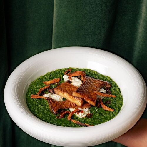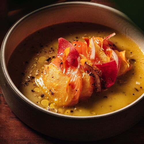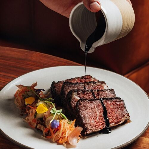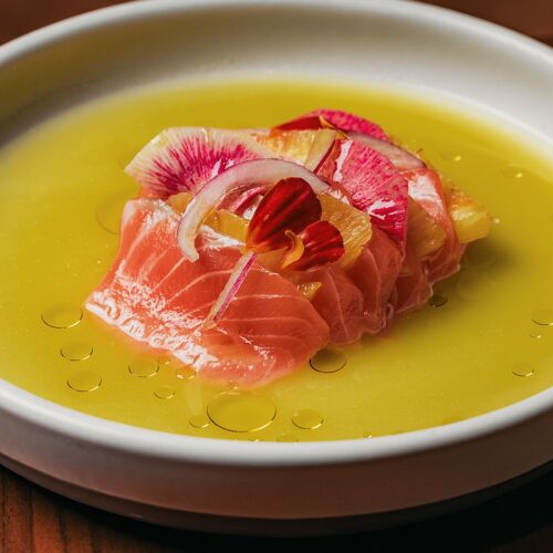 To be clear, this spot is more than just good looks and its short menu knits together a range of influences. Many of them are Asian, as in dishes like scallop aguachile with pineapple and black lime or a bao with smoked Wagyu short rib with XO aïoli. Roasted black bass with chili patis and ginger-garlic rice swings from sweet to savory to spicy, and comforts at every turn.