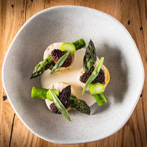 Set in a handsome bourgeois house, fashionably done up in a contemporary vibe with untreated materials such as oak, this inviting venue, a ten-minute drive from Epinal, is the brainchild of Nicolas Grandclaude and his wife. The modern, soul-warming culinary slant, backed up by exquisite plating, is illustrated in the likes of butterflied and seared wild prawns with coconut milk, ginger and lemongrass, or pan-fried whiting filets with courgettes, almonds and basil. Delightful.