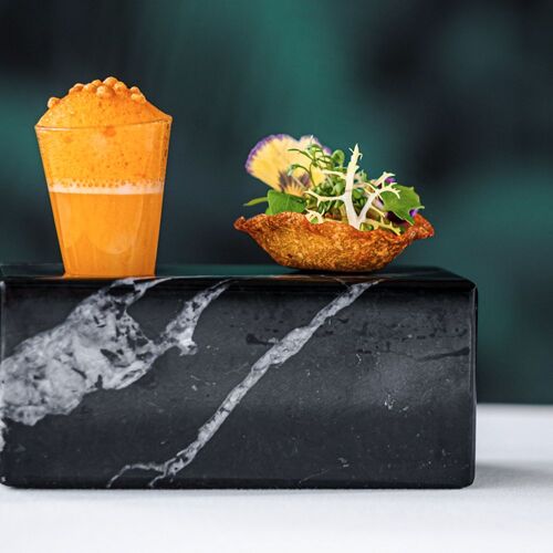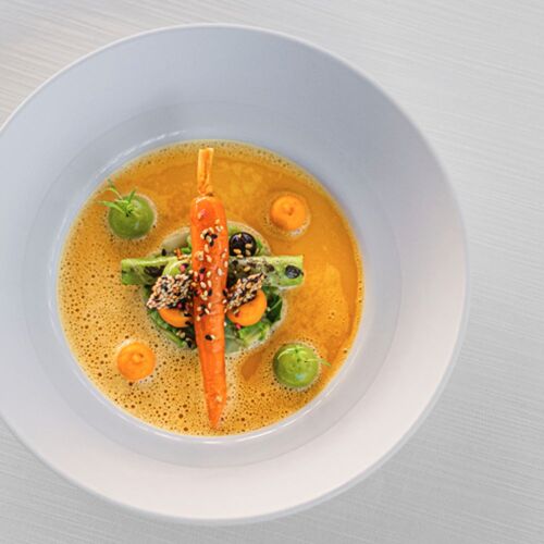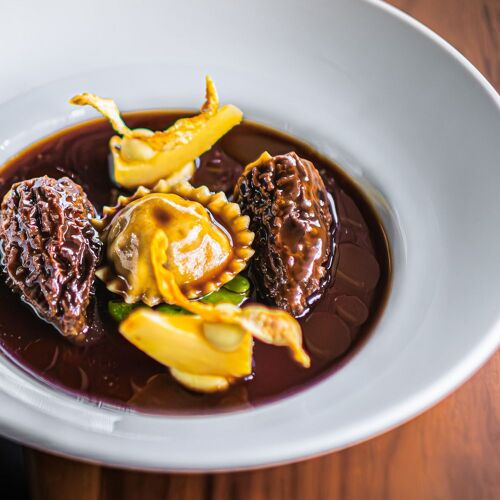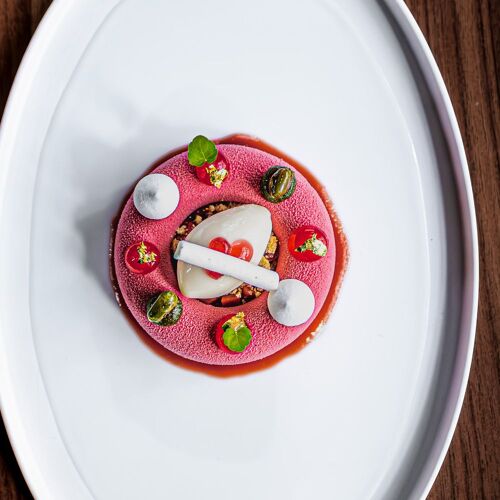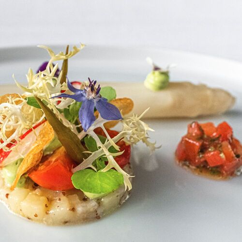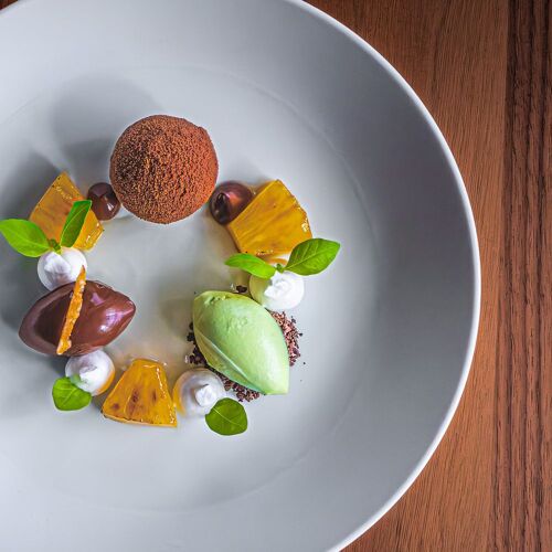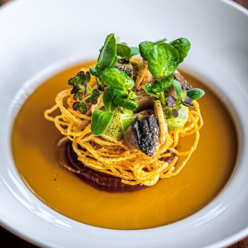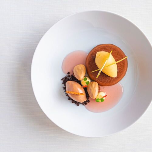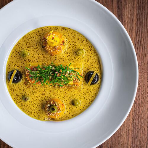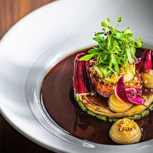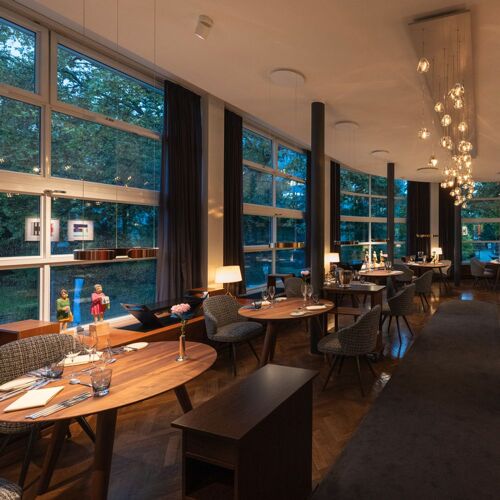 Andreas Krolik has been synonymous with fantastic vegan cuisine for years. Here in the Palmenhaus, adjacent to the Palmengarten, the chef creatively combines top-notch ingredients by virtue of extremely precise craftsmanship. His style is modern, yet rooted in classic culinary tradition. For example, the happy marriage of John Dory and Norwegian scallops, with a nutty macadamia crunch, sweet and sour pointed cabbage, firm pumpkin and the exotic touch of a curry-lemongrass sauce, is delicious. In the evening, two set menus are served: "Grands Produits" with meat and fish, and "Ethical Vegan Cuisine" a testament to the chef's passion for plant-based cuisine. At lunchtime, there are two appealing set menus, dubbed "Casual" and "Casual Green", each with three or four courses. Service comes courtesy of a very friendly and well-trained front-of-house team led by restaurant manager Boris Häbel, and the decor is stylish and modern. The wine pairings for the set menus are first-rate. Incidentally, the restaurant's name is a nod to the famous Château Lafleur vineyard near Bordeaux.