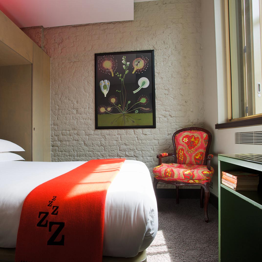 Supermarket has gutted one of Clerkenwell’s grimiest Victorian warehouses to make room for this hotel, whose entire ground floor is devoted to the restaurant, and the Atrium bar, both of which expand in a rather free-form way through a series of separate spaces, including, in summer, an outdoor terrace overlooking St. John’s Square.