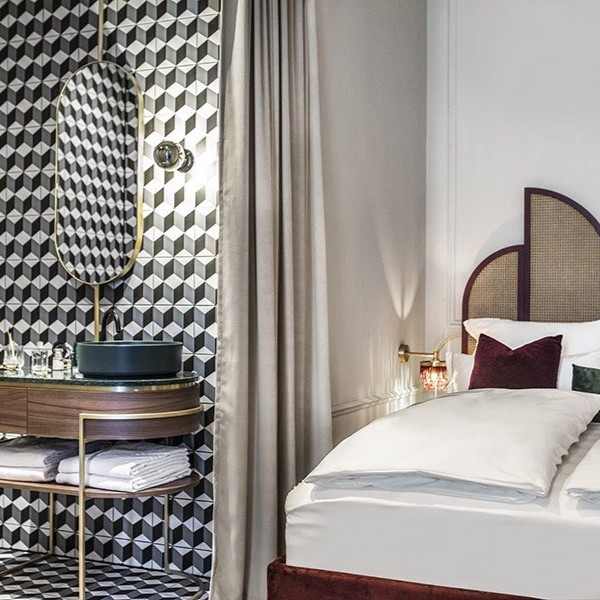 Only in Vienna do you find yourself wishing for more than just an ornate 19th-century façade. Such is the premise of the Hotel Josefine, whose elegant Gründerzeit-style exterior conceals rooms that are, if anything, even more sumptuous. Brass accents, rich velvet, and surreal tilework recall Weimar-era glamour, and every detail — real keys for your room, quaint rotary phones, a clawfoot tub, a complimentary bottle of wine — speaks of self-assured, timeless good taste. Downstairs, an honesty bar with a substantial vinyl collection and a Rat Pack–inspired cocktail bar ensure that you needn’t go far to get your Josephine Baker on.