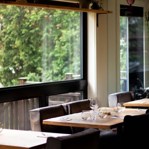 Welcome to Anthony and Claude's! Inside this charming red-brick house with a green-tiled roof, diners sit at the counter and face the kitchen to enjoy beautifully presented dishes made with local ingredients. Exquisite escargots are combined with pumpkin, sweet onions, and pumpkin seeds, and the house-made blood pudding surprises with its vibrant beet purée and chard leaf tempura. This is food that pairs wonderfully with the selection of local beers and natural and organic wines that are well worth perusing.