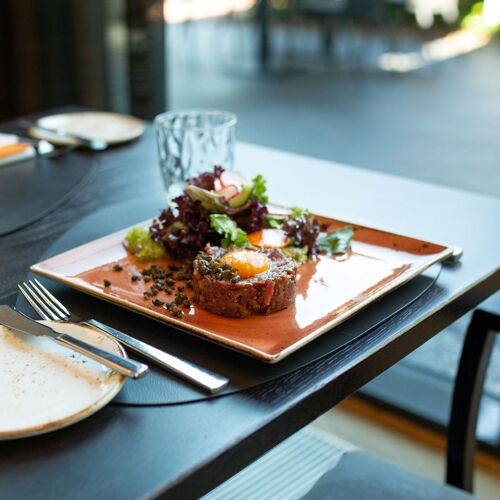 Located in a small park, the Kieler Kaufmann hotel is accommodated in a building that was originally a banker's mansion, the first iteration of which was built in 1859. This is the hotel's relaxed, laid-back restaurant alternative to Ahlmanns. Floor-to-ceiling windows offer a view out onto the greenery, and the service is friendly and competent. The menu is characterised by North German influences and inspired by modern cuisine. The lunch deal is also popular.