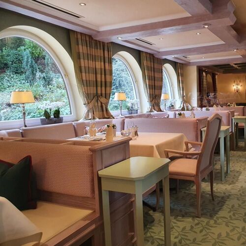 Served à la carte or as a set menu, classic cuisine made with seasonal produce is the order of the day here. The upscale interior is very comfortable, with harmonious, lovingly arranged decorative objects – it certainly does full justice to the luxurious setting of the traditional holiday hotel of the same name in which this restaurant is housed. For overnight stays, there are elegant country-house-style guestrooms – this is after all the sister hotel of Baiersbronn's Hotel Bareiss. Make a beeline for the gorgeous garden terrace in summer. A must in the afternoon: cakes made to Hermine Bareiss's old recipes!