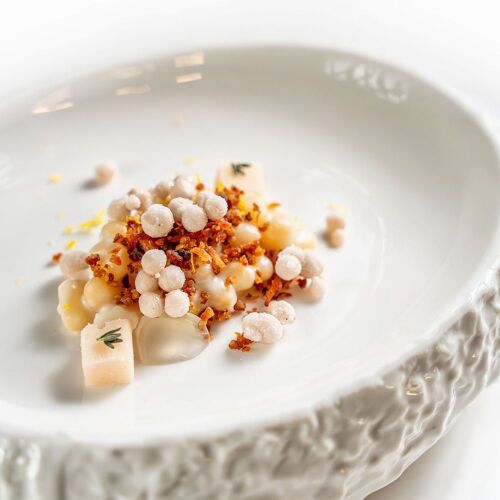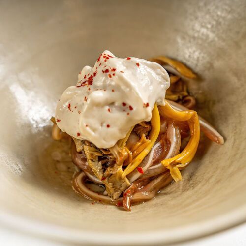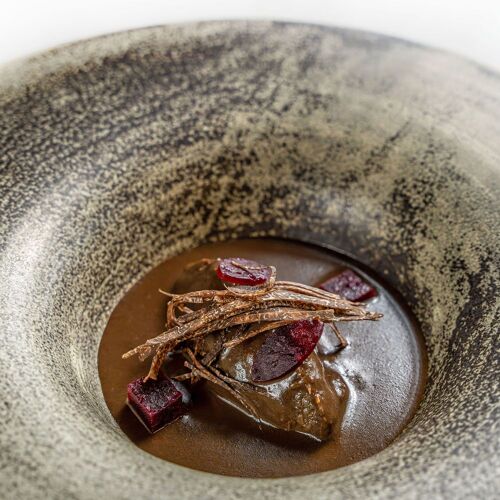 The Juncà siblings (with Jordi and Isabel in the kitchen and Joan in the role of sommelier and front of house manager), along with the highly valued contribution of their children, focus on the history of the property and its personality, while continuing to extol the virtues of the wooded landscapes of the Vall de Bianya. The “hostal” that first stood here in the late 19C has given way to this superb gastronomic restaurant with a contemporary look and interesting contrasts between modern design and the materials that connect us with our surroundings (stone, wood, leather etc). The à la carte and set menus (Memories in Evolution and Discovering the Valley) open the door to creative cuisine that embraces traditional Catalan cooking while at the same time showcasing seasonal native ingredients (we particularly enjoyed the morel mushrooms with a tripe and eel salsa, and the grilled peas with nettle pil-pil and hake cheeks). The attractive wine cellar occupies what was once a rainwater tank!