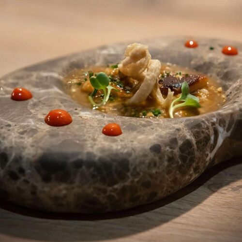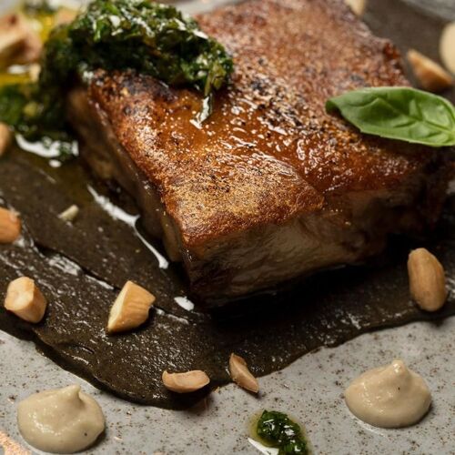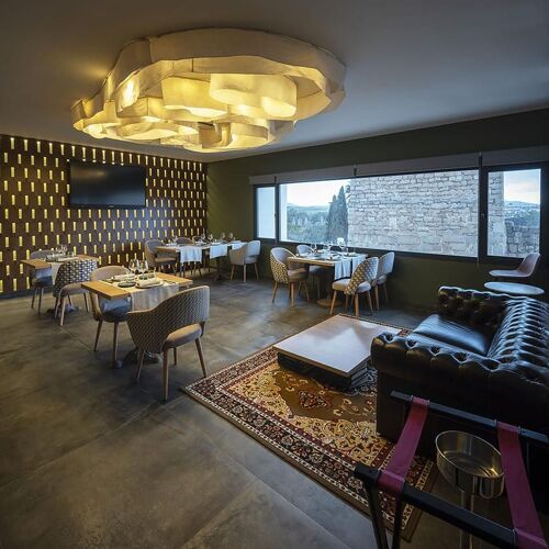 Located just a few steps from the city’s historic Alcazaba, and standing above some of Mérida’s Roman remains visible through a glass floor, this restaurant is definitely worth considering for tapas, a meal or just a drink given the pleasant Roof Bar on the first floor. The cuisine here, including a good selection of Joselito-branded starters and select grilled meats, also features two tasting menus (4 and 8 courses), the longer of the two with a wine-pairing option.