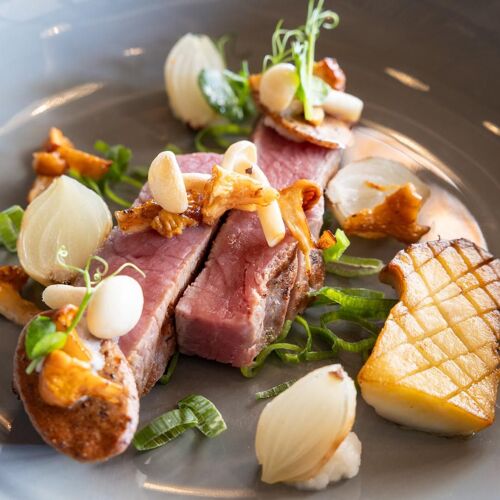 In the fine dining restaurant of the wonderfully located Maiensäss Hotel Guarda Val, the rustic charm of a 300-year-old cow byre meets modern simplicity. Service comes courtesy of a friendly and experienced team. When it comes to the food, the spotlight is shone on regional specialties. The two set menus (one is vegetarian) and the à la carte dishes are made almost exclusively from Swiss produce. At lunchtime, the offer is somewhat simpler – there is a three-course lunch menu, as well as à la carte dishes.