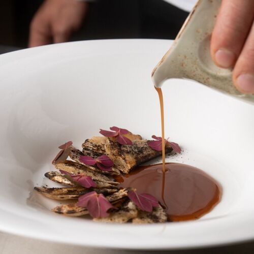 Nestled in the refined Antico Borgo di Sutri resort, in the heart of the lush Tuscia Viterbese, this restaurant offers an intimate and modern atmosphere, characterised by soft lighting and large windows overlooking the surrounding greenery. The talented young chef Lezzerini offers cuisine inspired by the local area, revisiting traditional regional recipes with modern techniques and using local food excellences. The tasting menu offers various options, from 4 to 8 courses; among the à la carte dishes, we highly recommend the saffron raviolini with marinated young rabbit and a delicious sauce. Also not to be missed is the Carnaroli Riserva San Massimo risotto, served simply but finely, with smoked robiola, wild nettles and celery.