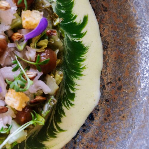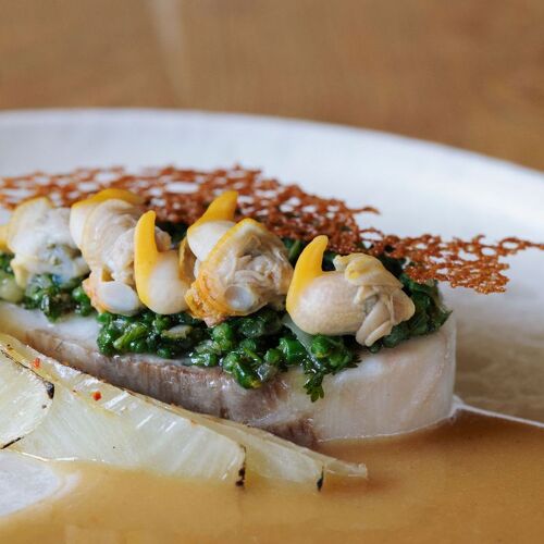 Surrounded by the gorgeous Meuse Valley, the Naxhelet estate boasts a golf course, a luxury hotel and this cosy restaurant. The natural beauty of the area is best appreciated from the terrace. Chef François Durand strives to maximise the use of local produce, often sourced from the sustainable projects of Terres du Val. His cuisine celebrates vegetables in all their glory. For example, he roasts pumpkin, crisps up the seeds and makes oil from the leaves. The dish is finished off perfectly with a subtly spicy Brillat-Savarin cheese sauce. At POLLEN, the flavours of the seasons come alive.
