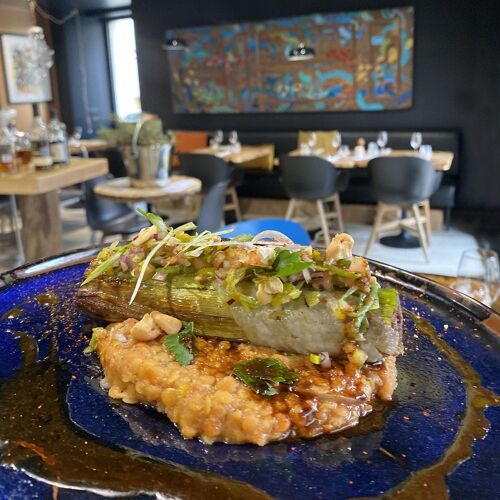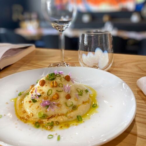 This hidden gem is nestled in a village at the confluence of two rivers – the Aveyron and the Viaur. A contemporary take on an artists' bistro, it boasts artwork on the walls and affordable prices. Working solo in his small, glass-walled kitchen, chef Arnaud Ronxin crafts ingenious dishes with the mission of showcasing seasonal produce. Think oven-roasted veal with confit potatoes and chanterelles, or lamb trotters with a red wine sauce. The more ambitious multi-course evening set menu is different every evening.