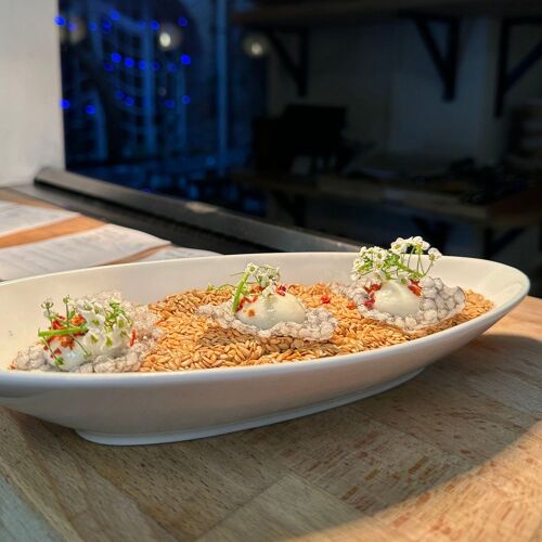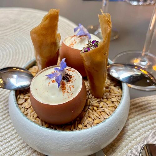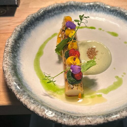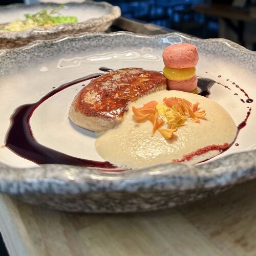 A stone's throw from Le Castillet, home to the Catalan Museum of Popular Arts and Traditions, this restaurant is tucked away in a historical side street. Élise and Charles Lagrange, in their early twenties, have opened a restaurant on the ground floor, with tables on a patio sheltered from the heat. With its generosity, precision, freshness and attention to the seasons, the chef's cuisine brings a smile to your face: tender white asparagus with smoked taramasalata and asparagus milk, pearlescent pollock on turnip risotto and sabayon maltais. Élise deftly oversees the service. A handful of well-chosen regional wines, served by the glass, are the icing on the cake.