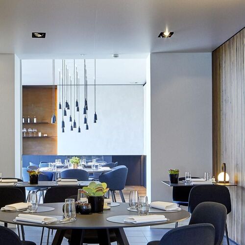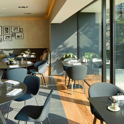 Vintage black and white photos, the father-in-law’s old bicycle and a Berkel meat slicer offset this restaurant’s elegant, fresh interior. De Ceder has been a blue-ribbon establishment in the area for some 40 years now. The chef knows all the classics of Franco-Belgian cuisine and often whips things up at the last minute, as is demonstrated by his steak with a subtle pepper sauce and fresh fries. He’s also keen on full-bodied oriental spices and Asian notes. We warrant you will adore the attractive wine list and, why not, even treat yourself to a night in the B&B…