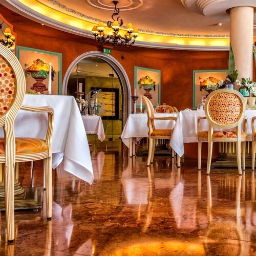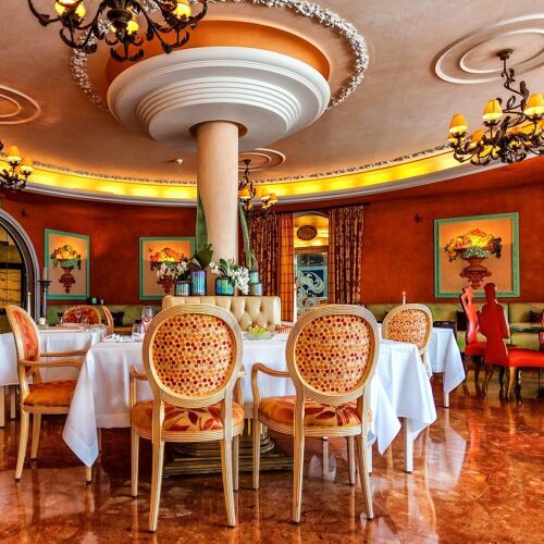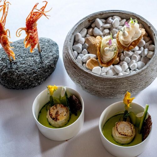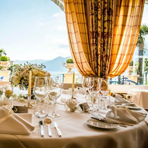 Chef Campanella offers highly personalized cuisine, with a keen focus on the simplicity of raw ingredients and on pairings – an approach shaped by his countless travels around the world and enriched with an indispensable Mediterranean touch from his Italian heritage. The two menus remain unchanged and are executed with masterful perfection: Moving Mountains (vegan) and Ispirazione (with fish and meat). Guests can choose from five to eight courses. The wine list is sure to meet the expectations of the most discerning connoisseurs, who can also engage with the knowledgeable sommelier. In the warmer months, the terrace provides a very pleasant atmosphere, thanks to an exceptional view of Lake Maggiore.