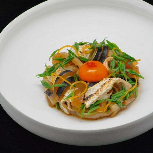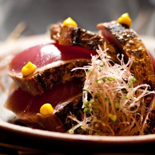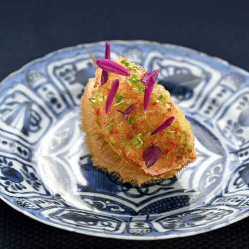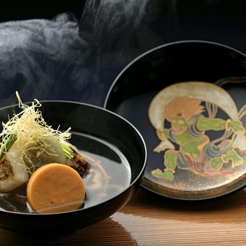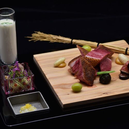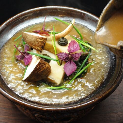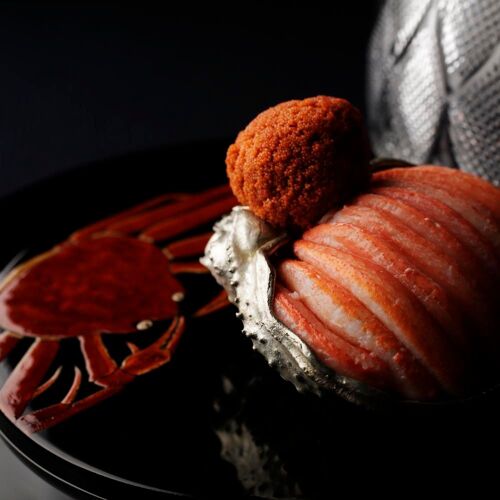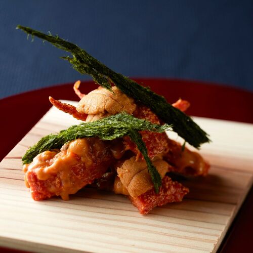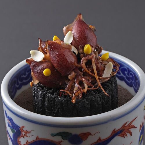 Seiji Yamamoto charts the vastness of Japanese cuisine. He handles his knives and tends his charcoal grill with relentlessly honed technique. He elucidates the properties of each ingredient and the best ways to prepare it with a scientific eye, displaying unwavering resolve. His winter menu is replete with fugu items, products of years of experience and passion for Japanese cuisine. Disarming frankness shines in Yamamoto’s favourite expression: ‘I’m a chef because I love cooking.’