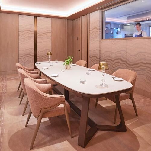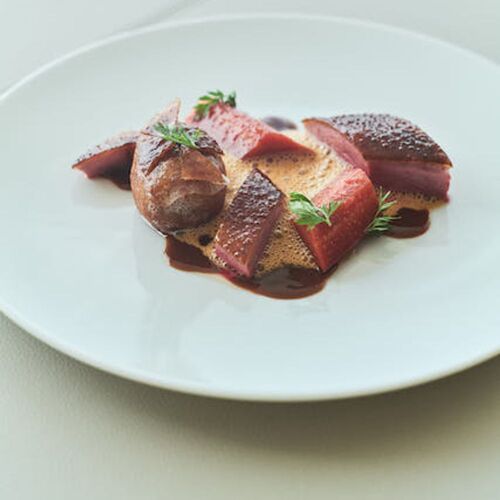 Prix fixe menus trace the steps of Daniel Calvert’s culinary journey. His experiences in each city—London, New York, Paris, Hong Kong—interweaves and elevates the culinary cultures of their respective countries. A borderless sensibility joins French ingredients such as foie gras and vin jaune with Japanese influences such as soy sauce and sake lees. ‘The key to success is consistency’, says Calvert, who fine-tunes his craft with each dish.