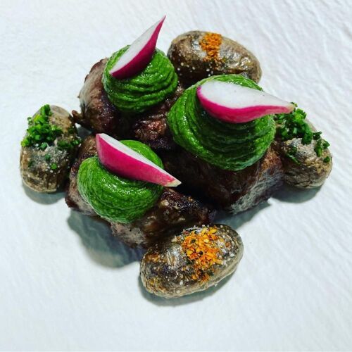 An unpretentious local restaurant with a modern feel and superb terrace that takes its name from the former family farm. Options here include an à la carte with a contemporary flavour, excellent off-menu recommendations (we loved the cod “kokotxas”), dishes that change with the seasons, an “executive” menu, plus another more extensive tasting-style menu option that requires a minimum 24hr advance booking.