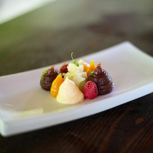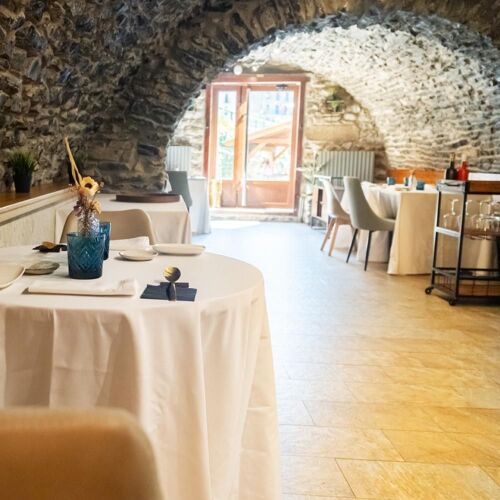 If the idea of a fine-dining break appeals to you, this restaurant in the Aragonese Pyrenees is a interesting and surprising option, despite its somewhat remote location on the edge of the spectacular Parque Nacional de Ordesa y Monte Perdido. Located along the banks of the Cinca and Yaga rivers, it features a dining room crowned by a large stone vaulted ceiling that dates back to 1593. Communication with guests is key for the duo of Rubén Coronas and Cristina Romero (the former in the kitchen, the latter front of house) who show real passion for their work and a true sense of gratitude which they demonstrate through a desire to engage with their customers. Their cuisine, showcased on a single tasting menu entitled Sueño (Dream), offers traditional cooking that has been impressively brought up to date in both technique and composition. Mouthwatering dishes include sturgeon royale from the Cinca river with a demi-glaze of toasted onion. There are only three tables here so you’ll definitely need to book ahead.