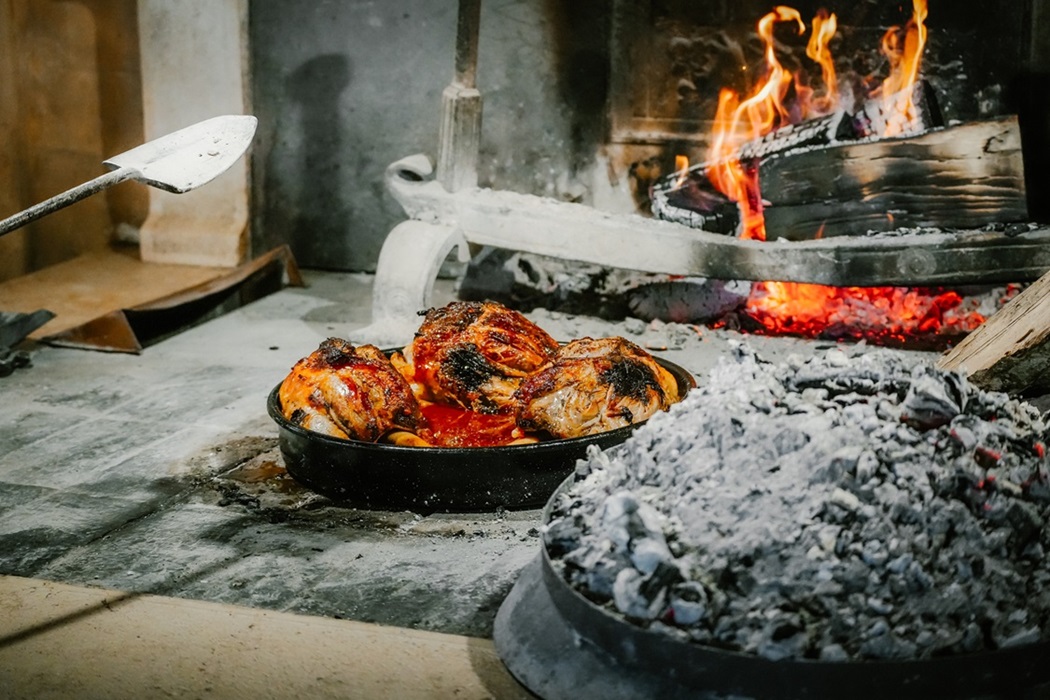 The dome used for cooking is called a peka: the technique involves covering the meat with a bell-shaped lid that is then covered with embers. The meat becomes tender and flavorful and is left to cook, depending on the cut, for up to four or five hours.