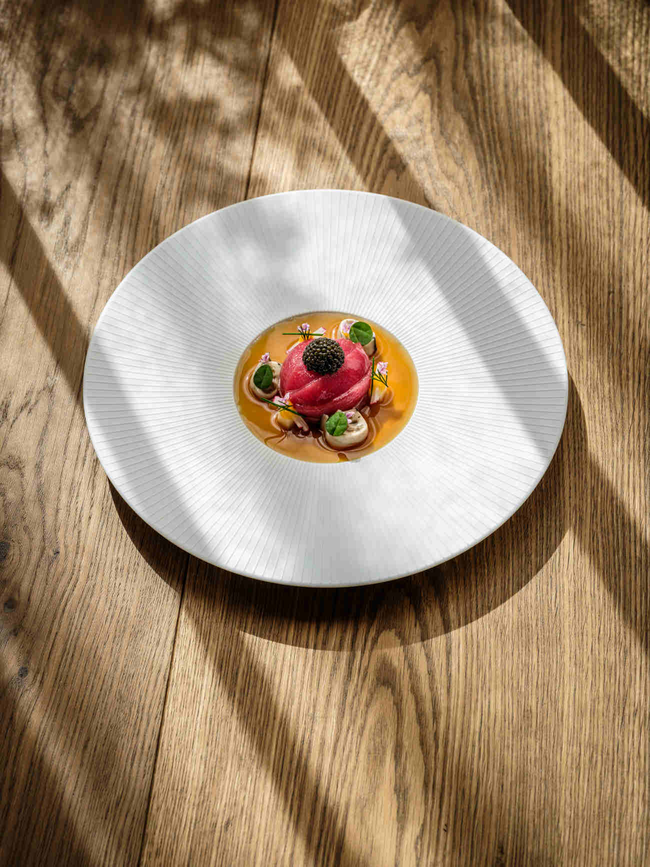 Among the newcomers with Two Stars are two familiar faces. Blending Surinamese and Hindustani roots with a French foundation, Soenil Bahadoer has developed a highly personal style over the years at De Lindehof. He now continues his exceptional story at GEM. by Soenil Bahadoer in Gemert, a stunning castle where the popular chef can further deepen his vision. He showcases premium ingredients such as European lobster and vegetables from his own garden in an exotic whirlwind of intense flavors.