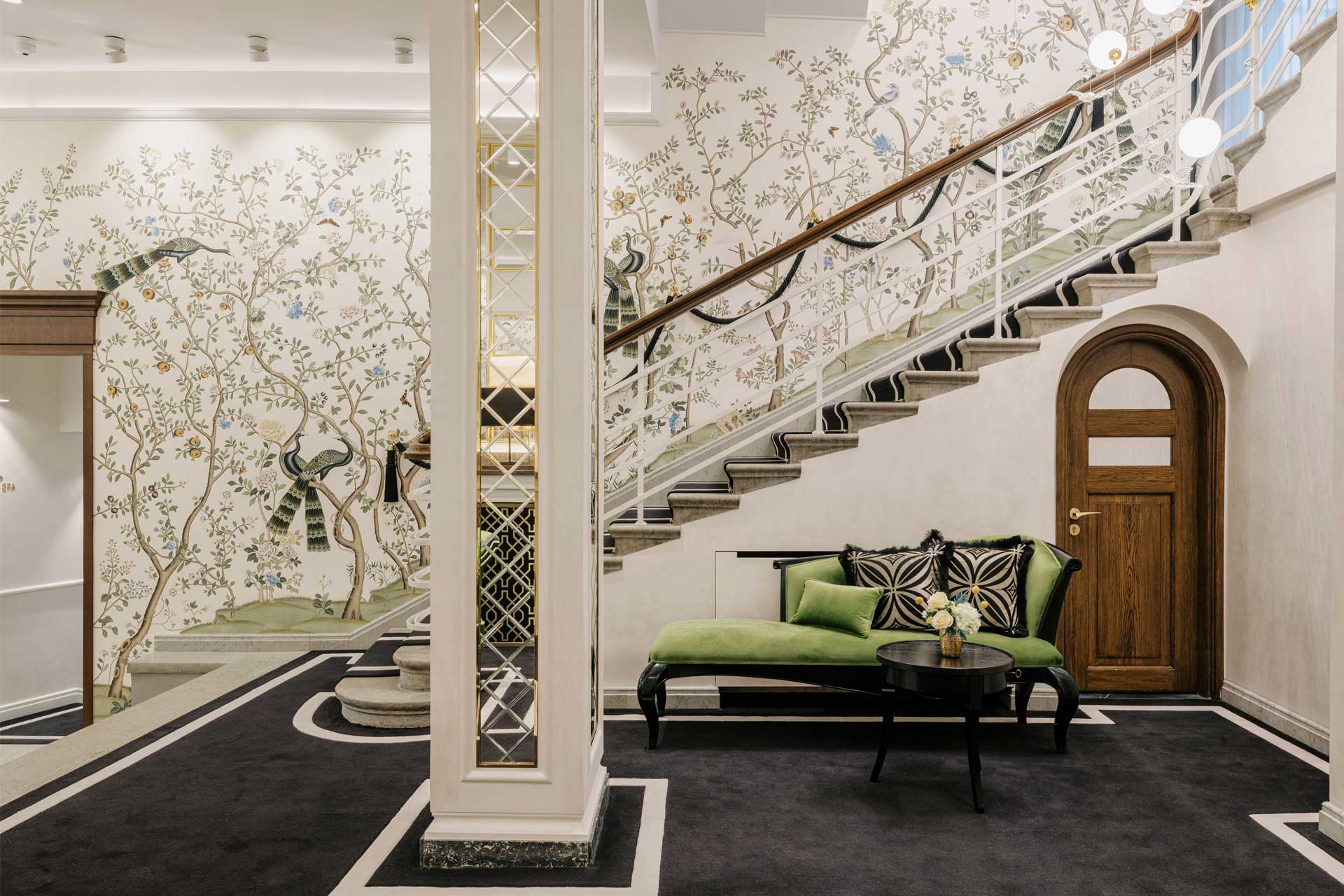 Hero image: The lobby at the Burman, with main staircase preserved from the original 1850 hotel. © The Burman