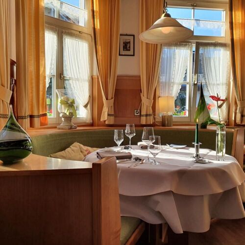This place has it all: a cosy atmosphere, extremely friendly and well-drilled service, as well as excellent food. Formerly named Gasthaus Krone, the Berlin family's restaurant has been a mecca for foodies for years – no wonder there are so many regulars! Chef-patron Franz Berlin presides in the kitchen, overseeing a successful fusion of classic cuisine and modern influences. The four to seven courses of his seasonally inspired set menu are harmoniously composed and presented with a refreshing clarity, a case in point being the cod, pan-seared with the skin on, with veal head ragout, pak choi and a horseradish and blood orange foam. A vegetarian set menu is also available by prior arrangement. When it comes to wine recommendations, you can certainly put your faith in the sommelier – he has a story to tell about pretty much every wine in his collection. For overnight stays there are comfortable guestrooms and decent spa facilities.