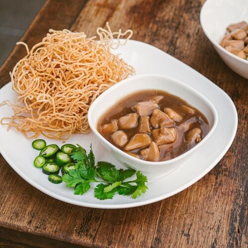 Opened since 1926, it has been relocated. This small shop is now run by the third generation. The owner has been cooking with her grandfather's recipes for many years. The signature dish chicken stew is juicy with chicken and rich in sauce. It can be paired with rice or deep fried egg noodles.