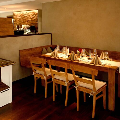 This delightfully chic and modern restaurant is to be found at the foot of the hill on which Andechs's famous abbey stands. The Holzinger family used to run a farm here, but nowadays they welcome diners with warmth and dedication. While the father handles the service, the son runs the kitchen with his mother's assistance, preparing delicious dishes using fresh ingredients and drawing on regional and international influences. Think sous-vide neck of Bavarian free-range pork with mashed potatoes, Dijon mustard, onion and pork jus, or roasted root chervil, peanut curry crunch, black cumin mayonnaise and orange yoghurt. You can also stay overnight here in one of the really comfortable and spacious maisonettes or suites.