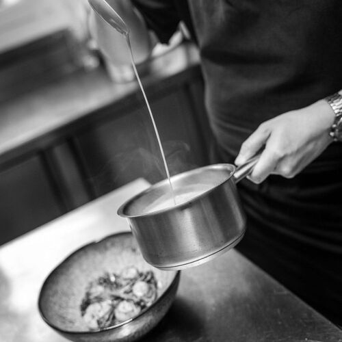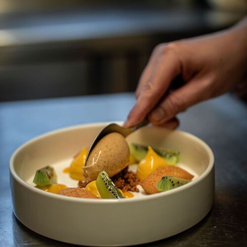 Tucked away behind the town hall, this compact restaurant has a somewhat unusual basement-level dining room with exposed stone, metal beams, glass partitions and modern light fittings. The chef cooks up hearty dishes, remarkable for both their generosity and bold flavours: maiale tonnato, Parmesan and capers; magret de canard, mashed potatoes with whole-grain mustard, vegetables and a piquillo pepper coulis. Friendly welcome and service, and the lunchtime set menu is a steal!