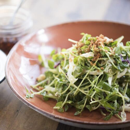 Burmese food with a California spin is on the menu at Chef/owner Tiyo Shibabaw’s cheery spot in Temescal, where the tea leaf salads come with kale and there’s plenty of flaky, golden roti bread to go around. Everything is affordable here, but the lunchtime specials are an especially good deal: a hot and flavorful entrée (like spicy coconut curry chicken with rice noodles) and a fresh salad—go for the pea shoots topped with radishes and fried garlic in a turmeric dressing.