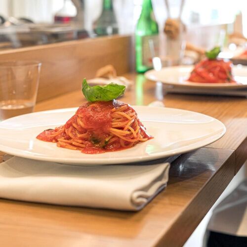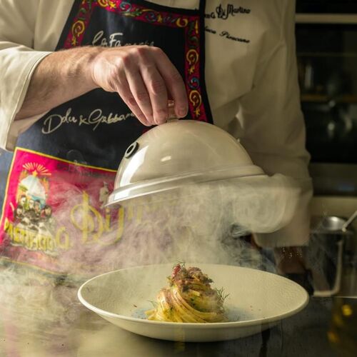 Situated opposite the Maschio Angioino (Castel Nuovo) in Naples, this restaurant was opened by a pasta producer from nearby Gragnano, making it the perfect choice for pasta-lovers. Sit at a sushi-style counter watching the chefs at work and choose from a menu that is dedicated almost entirely to pasta dishes (as well as desserts), most of which are based on traditional recipes. When ordered individually, the dishes are generously portioned; however, for a more complete overview, opt for the tasting menu which includes more courses but smaller quantities.