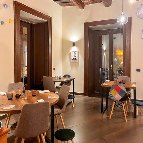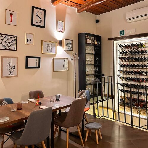 Having spent many years living in Spain, the young chef at this quiet, elegant restaurant offers an appealing combination of Spanish and Italian dishes, resulting in his own interesting interpretations of Mediterranean cuisine. Situated in the heart of the historic centre, the restaurant has an open-view kitchen and chef’s table for four guests near the entrance, while the main dining room is on the first floor.