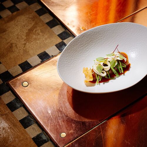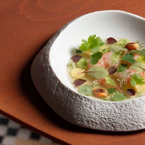 More than just a restaurant, this eatery is a part of local history as it occupies a building dating back to 1919 that once belonged to a group of farmers and acted as a casino and a type of social club. In the hands of the Feliu family since the 1950s, it has taken on a new lease of life under the baton of Cristina Feliu and her partner, chef Àlex Carrera, who came here to set up his own restaurant after working for several years at El Celler de Can Roca in the province of Girona. To a delightful 19C-style backdrop featuring lots of vintage decorative details, savour cooking with a contemporary flair where locally sourced ingredients take centre stage, all of which are explained in detail with every course. Two tasting menus (Discovery and Emotion) are the only dining options, both of which begin with what the restaurant refers to as “vermouth time”.