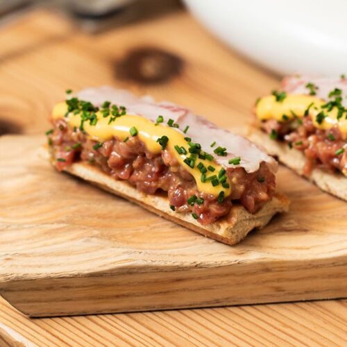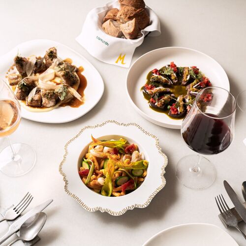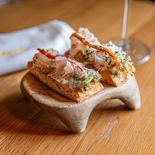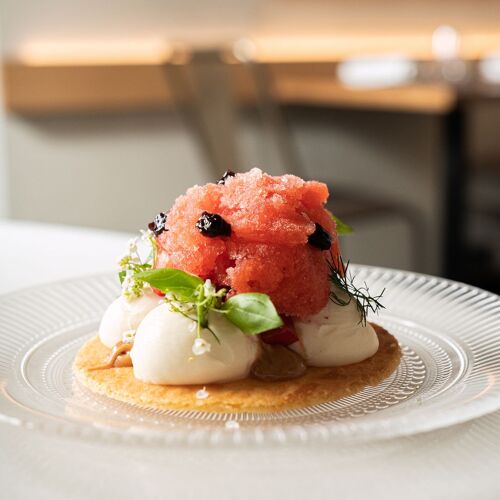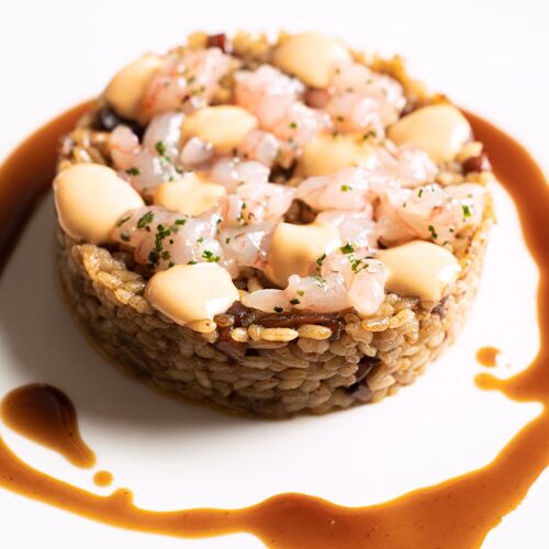 This restaurant, located just a few steps from the San Antoni market, has made a name for itself thanks its mix of cuisine from the sea and the mountains. Here, they like to say that they create food for “nonconformist gourmets”, for whom they have created varied cuisine with a modern touch and an impressive array of dishes and tapas, along with daily specials and main dishes made for sharing. We particularly enjoyed the rice dish with red Palamós shrimp tartare, shrimp head emulsion and pig’s trotter carpaccio, a dish that pays homage to the legendary Els Tinars restaurant in Llagostera. There’s also a menu entitled “At your service, chef!”