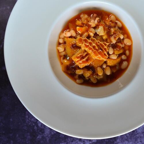 A bright, spacious and attractive restaurant with an industrial decor in which the creative cuisine on offer and its philosophy of solidarity (the restaurant is part of the Fundación Raíces’ “Cooking with a Conscience” project that aims to involve vulnerable young people in working and social environments) have won many admirers. The cuisine on offer here is based around an à la carte and three tasting menus (Ovillo, Madeja and Tirar del Hilo), all of which impress with their extensive choice of mini appetisers. We particularly recommend the tripe with haricot beans, which won the world’s best tripe dish award in 2022.