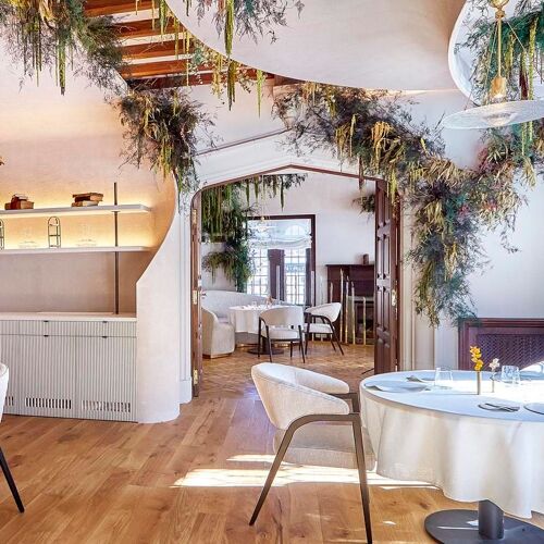 A unique restaurant in every sense of the word, occupying the old Villa Thiebaut, an aristocratic property in the city’s embassy district that is now home to delightful dining rooms full of history (there’s also a more modern private space in what was once the chapel). The property is also home to the MOM Culinary Institute and has its own small city garden. The restaurant’s identity and cooking, under the baton of chef Miguel Vidal, have their focus on contemporary cuisine that always champions the best seasonal ingredients and classic techniques. These are showcased in outstanding dishes such as the prawn croquettes “al ajillo” with a prawn tartare. On the table you’ll also find a glass dome under which fresh sourdough is presented before being taken to the oven to be baked!