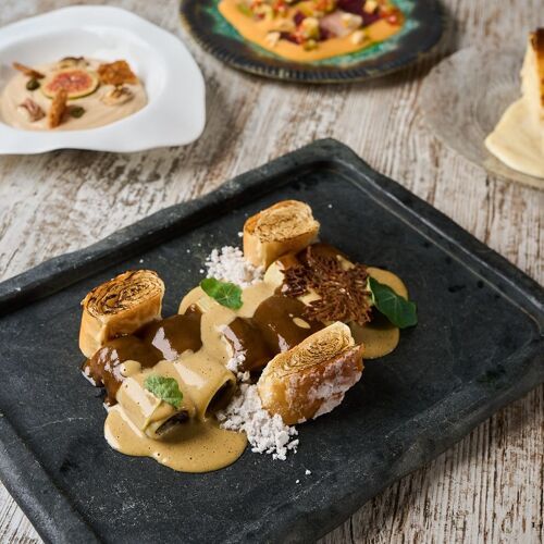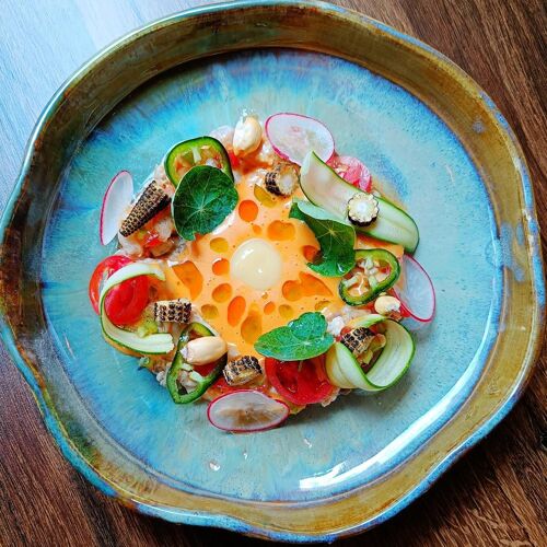 Koiné’s name refers to a variant of the Greek language once used in Ancient Greece. Here, the cuisine has returned to the origins and roots of Mediterranean cooking, working in tandem with the culinary traditions of Andalucia and with a style that has adapted to contemporary tastes. The chef has previously worked in the R&D department of the Dani García Group – a detail that is obvious on the menu.