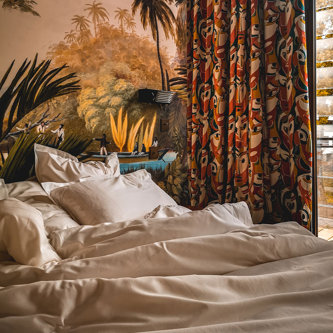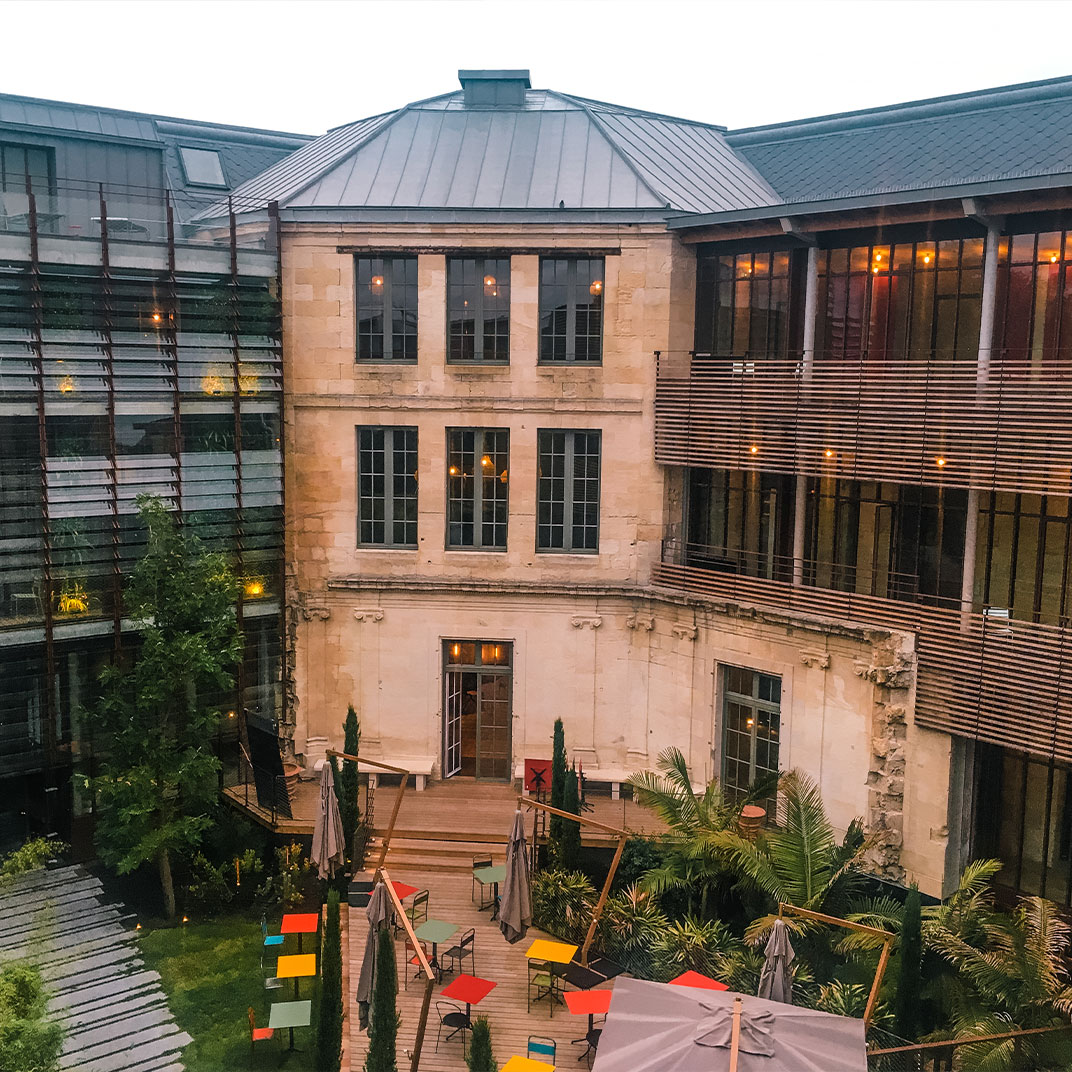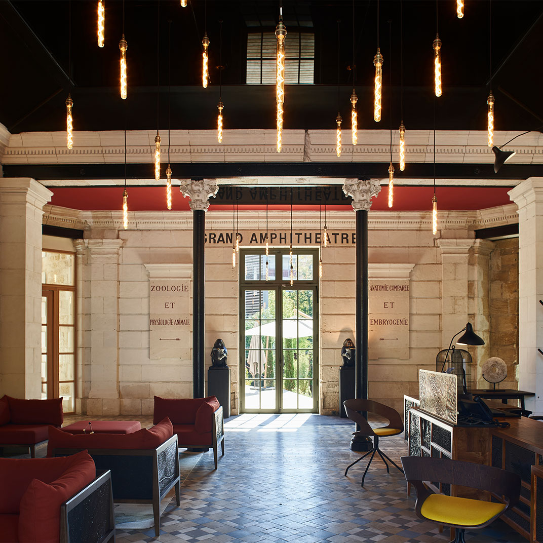 Housed in the former Bordeaux Institute of Zoology, from which it takes its name, La Zoologie doubles down on its natural sciences beginnings with interiors inspired by biology, flora and fauna. The 40 guest rooms are split across three wings, named Geology, Zoology and Botanic, and blend a mix of Bordeaux stone and clay walls, original brickwork and half moon windows with natural, earthy shades and wallpapers depicting a mix of animals, verdant forests and maritime scenes. The wellness area offers massages with made in France products, a Jacuzzi, hammam, sauna, and an outdoor terrace shaded by leafy palms, although relaxation time comes at an extra charge for guests booking into a Classic room. Bistronomic restaurant La Zoologie serves a seasonal menu focused on market produce, a team of mixologists shake up the hotel’s signature cocktails in the bar, and in summer, the rooftop terrace opens with panoramic views of Bordeaux.